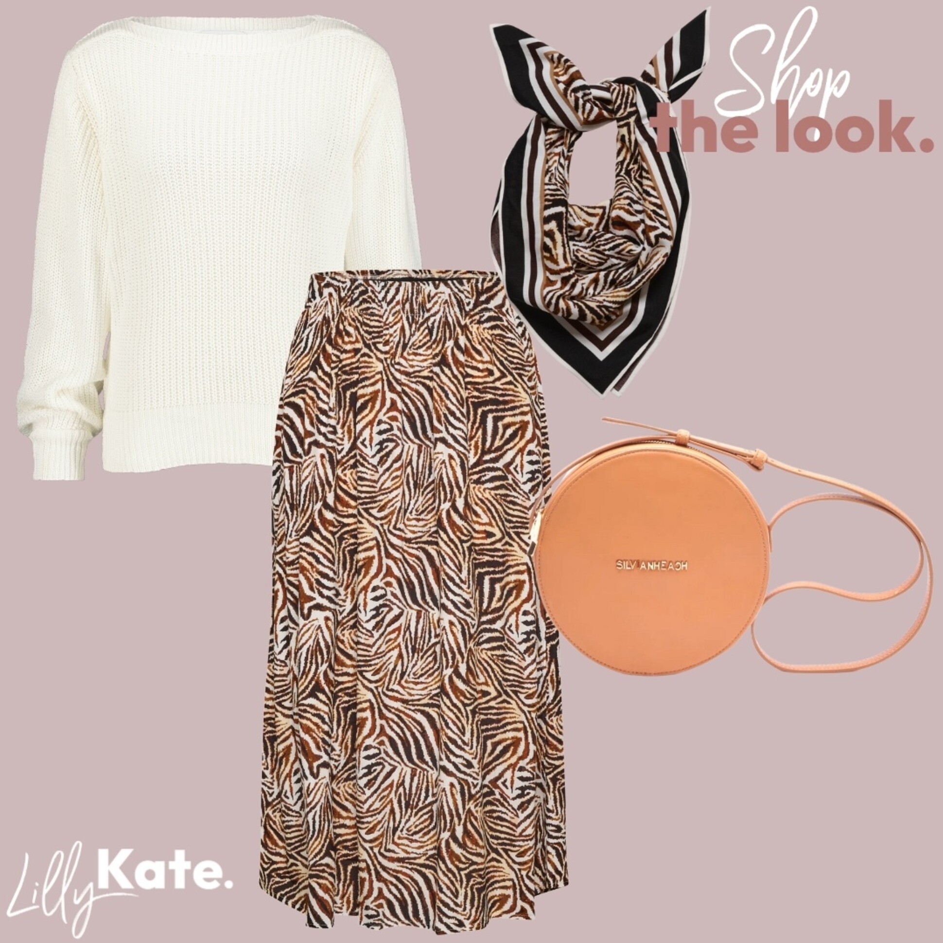 De lente is al even aangebroken en dat betekent dat het tijd is voor een frisse, nieuwe look! Voor deze lente heb ik een perfecte outfit voor je samengesteld. In deze "Shop the Look" vind je een combinatie die bestaat uit de Tessa midi rok met zebra print van Saint Tropez, de bijpassende Tessa sjaal zebraprint en een zacht gebreide katoenen trui van Simple.