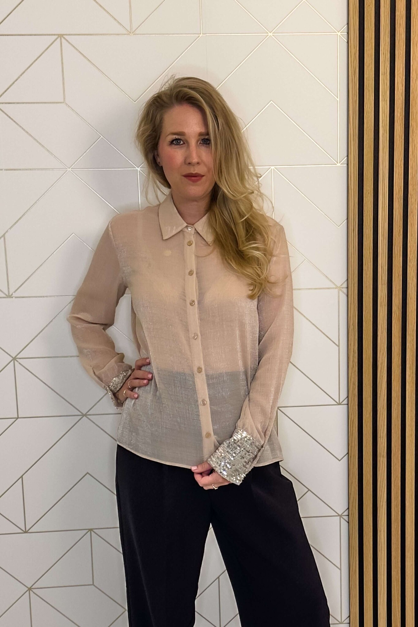 • De Tunika nude blouse van Liu Jo is stijlvol, elegant en vrouwelijk. De manchetten zijn veredeld met pailletten, wat de blouse een tintje glamour geeft. Draag de blouse met een zwarte pantalon voor een zakelijke look of met een a-lijn- of kokerrok voor om een trendy outfit te creëren voor naar een bruiloft.  Deze blouse wil jij in jouw garderobe, dus wacht niet langer en shop hem nu!
