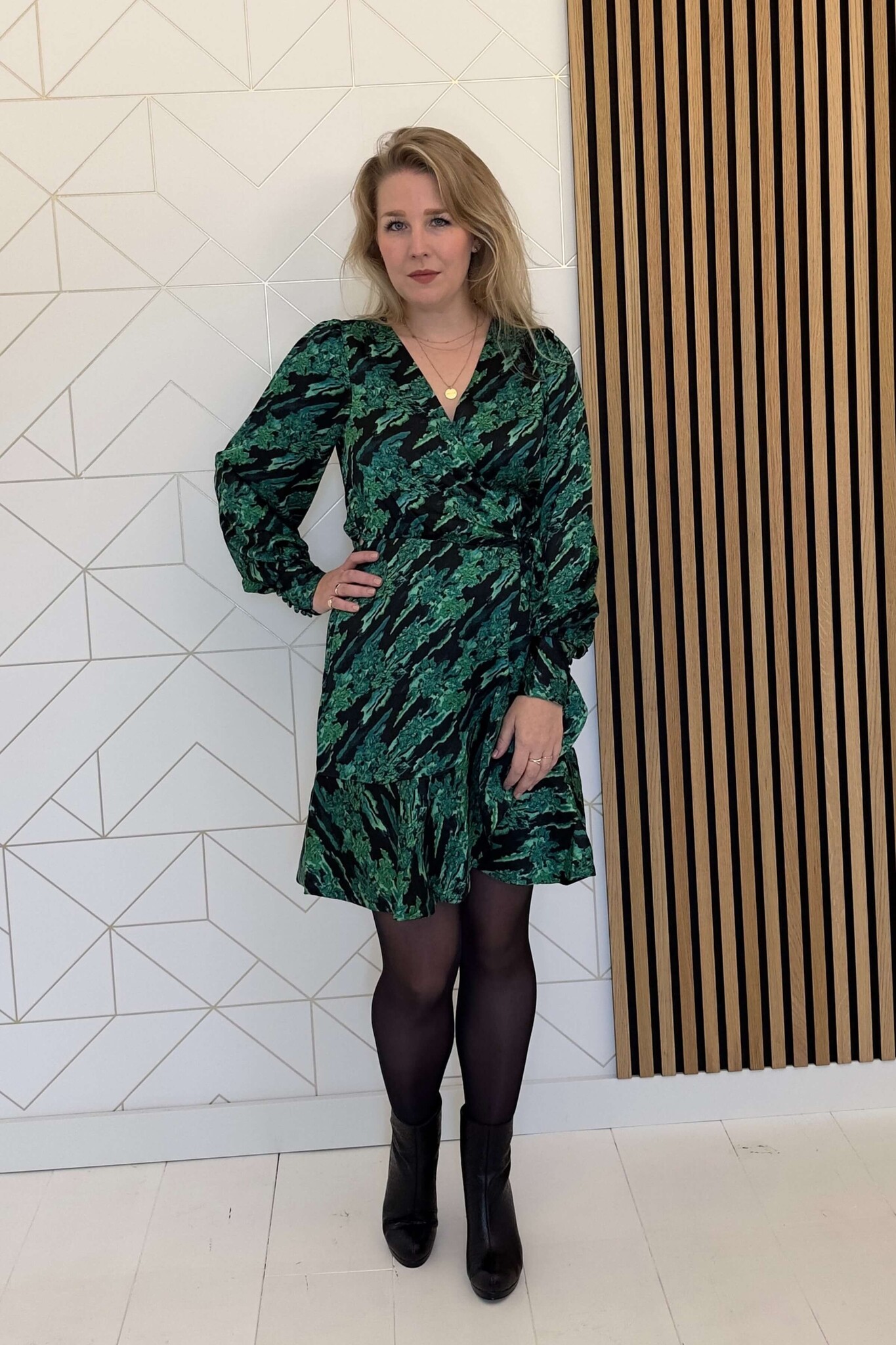 Deze prachtige mini-jurk van Freebird is een absolute must-have voor je nieuwe wintergarderobe. De verfijnde groene print, de brede golvende zoom aan de onderkant van de rok en de wijde manchetten creëren een uiterst stijlvolle uitstraling.