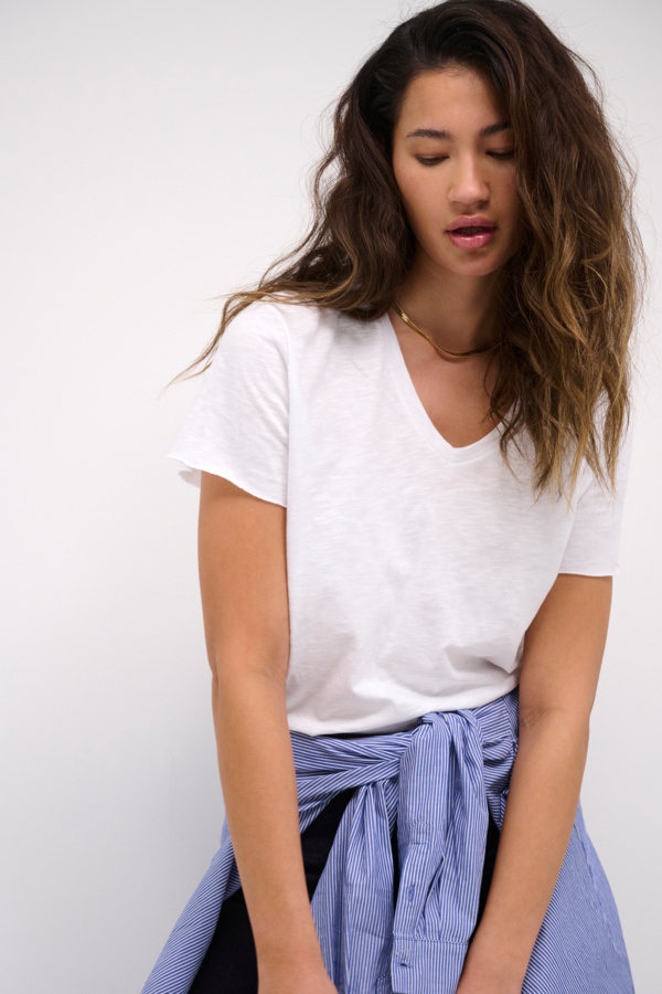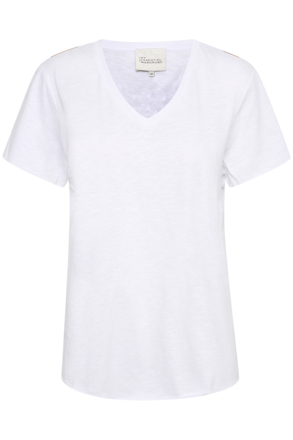• Fijn basic wit t-shirt van My Essential Wardrobe. Het t-shirt is gemaakt van 100% organisch katoen en is daardoor erg comfortabel. Voor een casual look erg leuk te combineren met een zomerse broek of rok. Het t-shirt is ook erg leuk met een pantalon met een pump er onder of voor een stoere look met een veter laarsje.
